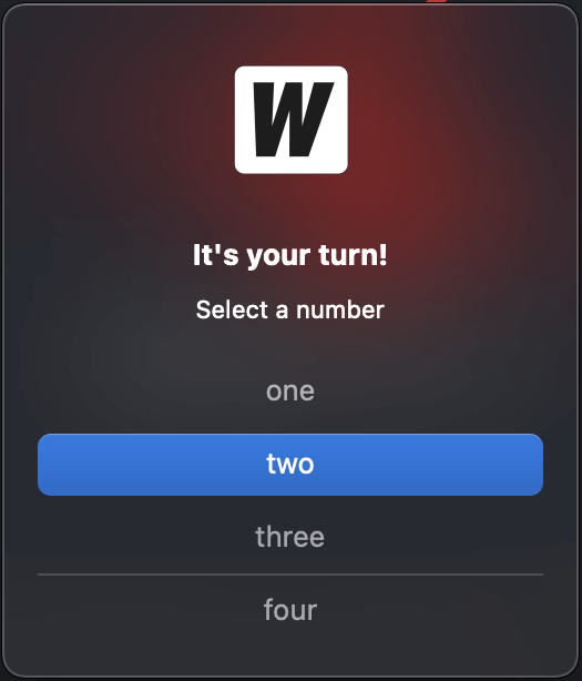 Buttons: []string{"one", "two", "three", "four"},