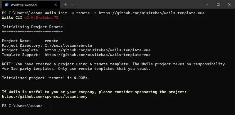 在 v2 中,我希望通过让您能够自己创建和托管模板来增强社区的能力,而不是依赖于 Wails 项目。 所以现在您可以使用社区支持的模板创建项目! 我希望这将激励开发人员创建一个充满活力的项目模板生态系统。 我对我们的开发者社区可以创造的东西感到非常兴奋!