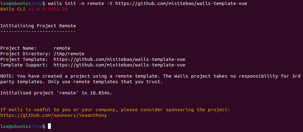 PPS:如果您或您的公司发现 Wails 有用,可以考虑赞助该项目。 谢谢!
